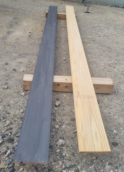 不均一なグレーイングが始まっていたウッドサイディングにリグノシル・ヴェラノ4832番を塗装 ― カーポートの例